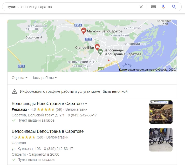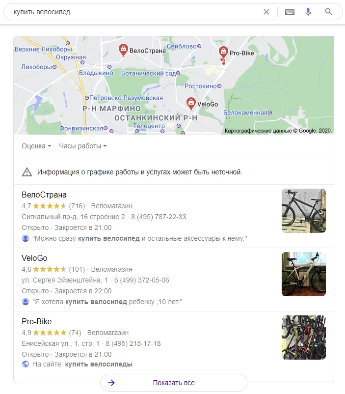 Результаты поиска на уровне города важны для тех видов бизнеса, которые работают по всему городу. Например, предприятия, не привязанные к конкретному адресу. Это фотографы, клининговые услуги, кейтеринг, доставка и интернет-магазины. Результаты поиска по этим запросам обычно остаются более или менее одинаковыми по всему городу.