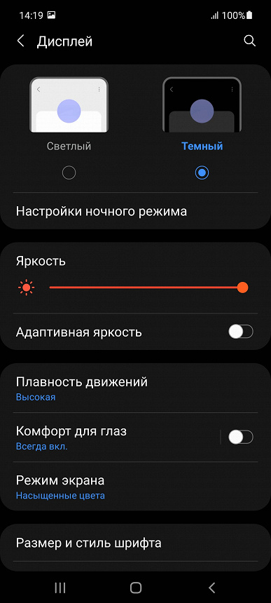 В Samsung создают сбалансированные экраны, они отличны по своим характеристикам, но ключевой особенностью является ШИМ, то есть экран мерцает с определенной частотой, чего человеческий глаз просто не видит. Особо впечатлительные люди утверждают, что они видят это мерцание, им от него плохо. Если вы об этом не знали, то теперь узнали, и на вас будет влиять этот фактор. В реальной жизни ШИМ ощущают от силы доли процентов пользователей OLED-экранов, большинство из них реализовано с использованием этой технологии. Победить проблему можно с легкостью, ставьте уровень подсветки от 70% и выше, ШИМ исчезнет.