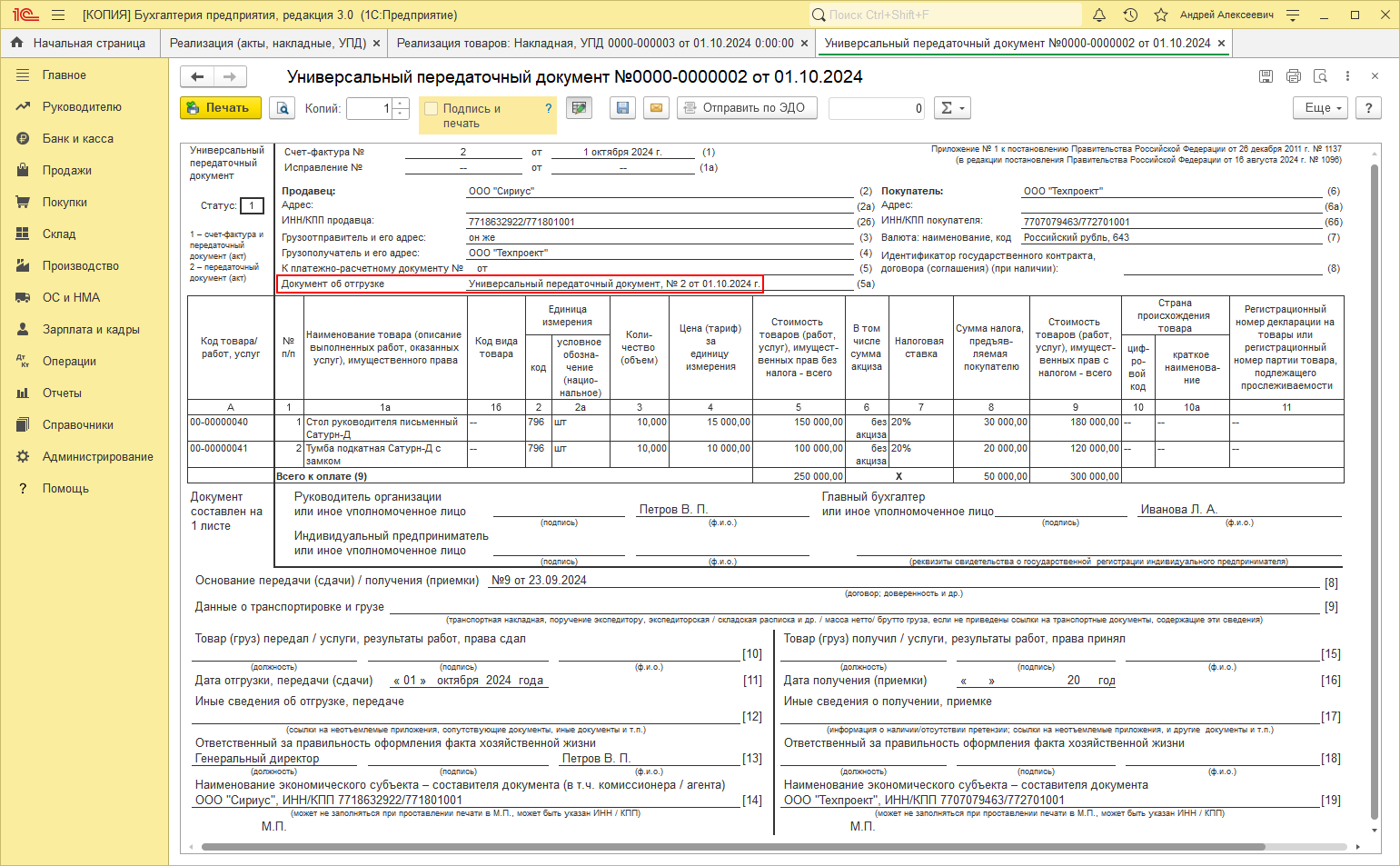 Универсальный передаточный документ